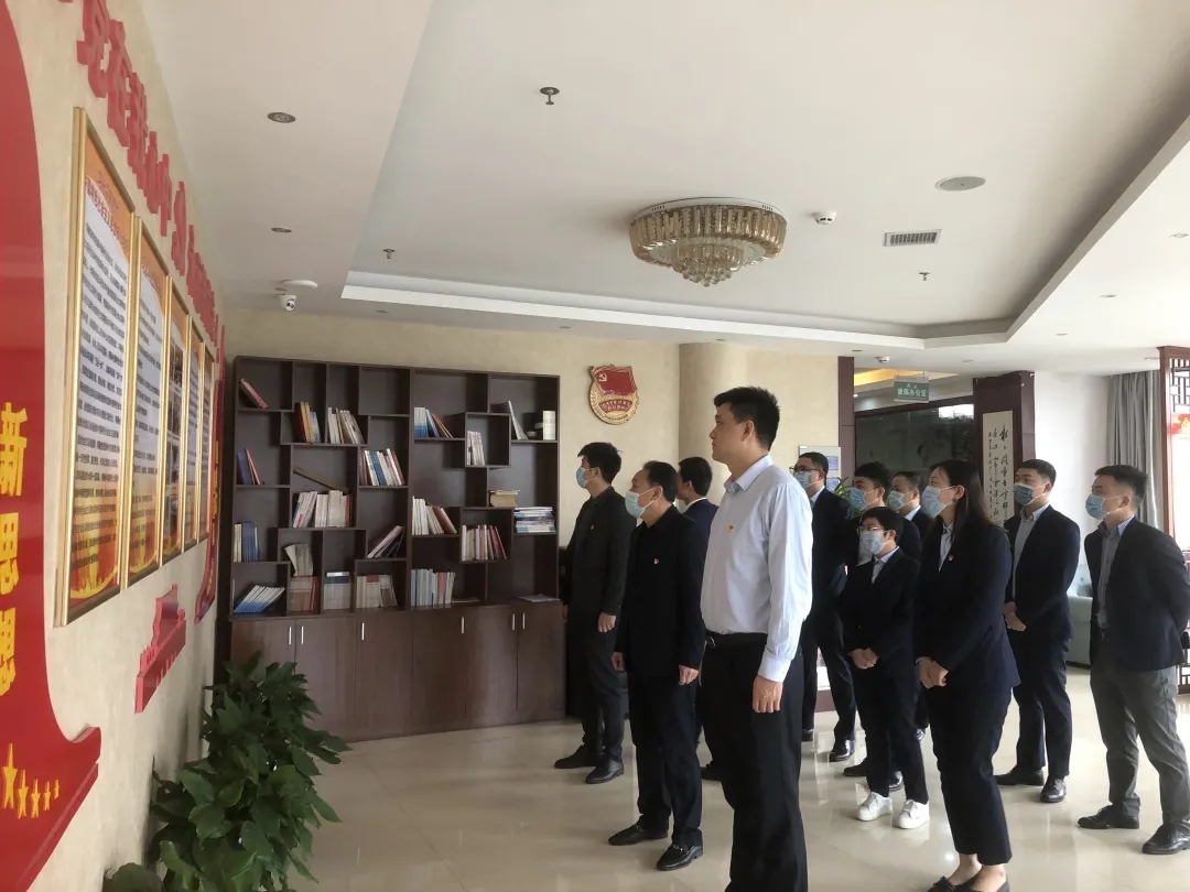 为深入交流党建工作经验方法,促党建工作共同提升,2021年 4月 14 日上午,中国铁建十六局集团置业江西京诚房地产有限公司(简称京诚公司)党支部书记王火生、副书记刘剑强带领党员一行11人莅临我所交流探讨党建工作,我所党支部书记程锋、主任张艾及党员律师热情接待了京诚公司党支部交流团一行。