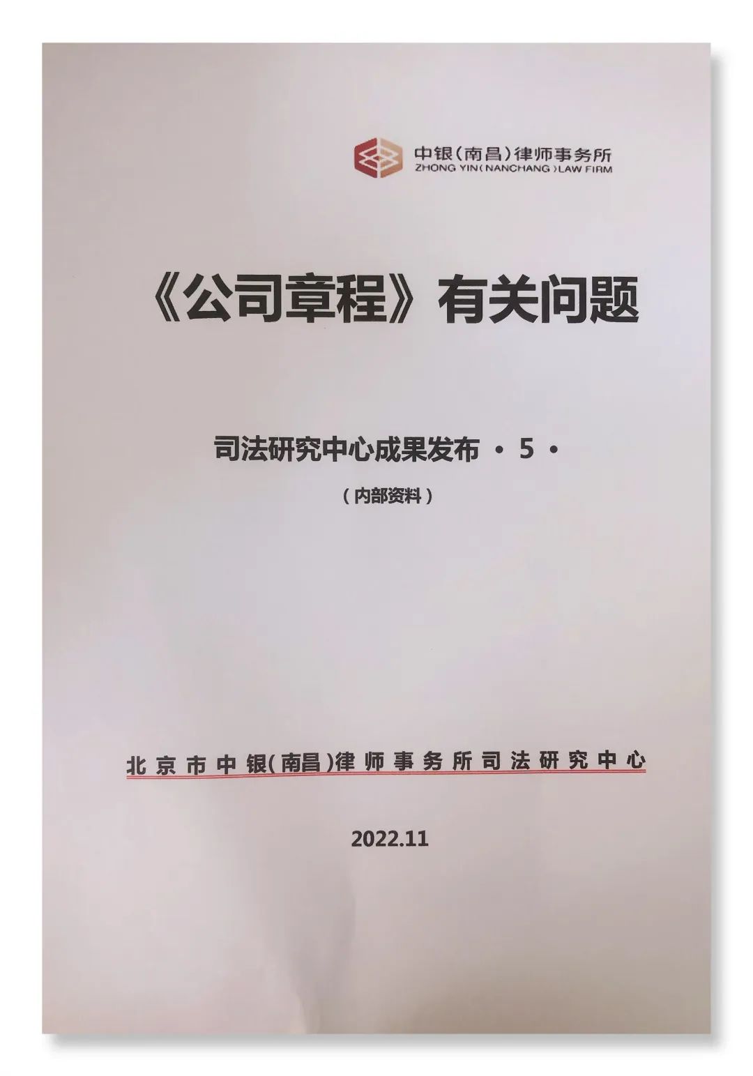 北京市中银(南昌)律师事务所司法研究中心一如既往、潜心研究。本月推出第五期专题研究成果——《公司章程》有关问题。全文两万余字,围绕着章程制定的法定性、章程的成立与生效、章程的无效与撤销、股东知情权的问题、章程中的分红问题、股东出资义务问题、高管条款设计问题、股东会的运行机制、董事会的运行机制、关联关系防控条款等十个方面进行了详细的探讨。从相关法律进行归纳和总结,结合实例进行剖述,内容详实具体,成体系地厘清了公司章程中的理论问题和应用中的相关实践问题,具有很强的实务参考性,系中银南昌所在司法理论与实践探索过程中的又一力作。